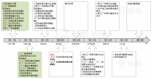 因業務拓展需要,將原有的二廠和三廠進行合并,并承租一個更大的園區,由博革集團旗下上海必旺智能科技承接了此次園區的精益布局業務。