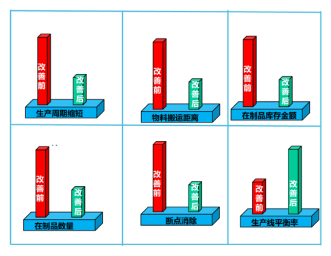 一、項目背景: 01 公司簡介 成立于2015年,是產(chǎn)銷研一體的自動化 產(chǎn)品/設(shè)備線束方案解決商。公司產(chǎn)品包含端子臺、繼電器模塊、 總線IO、非標設(shè)備線纜定制、整機線束打包、機器人線束、無塵 拖鏈及線纜全套外包、工業(yè)連接器、快速插線端子9大系列。廣泛 應(yīng)用于汽車、3C、鋰電(新能源)、激光、光伏、半導(dǎo)體、傳統(tǒng) 制造等行業(yè)的自動化設(shè)備。 公司規(guī)模及產(chǎn)能在華南地區(qū)處于一線,銷售網(wǎng)絡(luò)覆蓋全國各大區(qū) 域,在深圳、蘇州、成都、長沙等核心工業(yè)城市均設(shè)立了銷售公司。 02 案例背景 因工廠需要搬遷到新工廠,而老工廠裝配采用工段式分離生產(chǎn)方式,(例:整條線進行剪編織,完成訂單后再轉(zhuǎn)下工段剝芯線,完成訂單后再搬運到下工序等) 公司的主要客戶為自動化 產(chǎn)品/設(shè)備生產(chǎn)商,需求生交期非常短,而且需要線束配套出貨,需現(xiàn)有生產(chǎn)方式過程中斷點多,導(dǎo)致生產(chǎn)周期長,為滿足出貨交期需要提前生產(chǎn)很多成品與半成品庫存,又間接導(dǎo)致現(xiàn)場WIP多,放置混亂,倉庫面積大,占用資金大等問題。 在新廠規(guī)劃與線體設(shè)計時迫切需要解決的這些問題。同時,現(xiàn)有的工廠生產(chǎn)模式還具有如下問題: 1 生產(chǎn)效率低 生產(chǎn)布置考慮不全面,布局不合理,工位不平衡,過程搬運多,部分工位作業(yè)節(jié)拍短,導(dǎo)致實際生產(chǎn)效率低 2 物流不順暢 沒有按產(chǎn)品工藝流程布局,物流交叉,迂回多,搬運距離遠,運行不順暢。 3 交付不及時 按訂單批量流動,生產(chǎn)過程線斷點多,生產(chǎn)過程放置時間長,導(dǎo)致部分訂單交付不及時。 4 員工搬運作業(yè)強度大 生產(chǎn)布局按功能布局,搬運距離長,次數(shù)多,按單量搬運并無搬運載具,單次搬運重,導(dǎo)致搬運強度大,效度低。 二、項目開展 01 項目方向確定: 根據(jù)現(xiàn)狀調(diào)查和分析,博革咨詢認為,打造按產(chǎn)品工藝連續(xù)流的生產(chǎn)方式,降低成本金額,核心工作是要縮短生產(chǎn)周期、降低中間再制品。 按產(chǎn)品工藝重新合理布局與設(shè)計連續(xù)流的生產(chǎn)線,增加并行工位間流動載具,并確定最小批量流動,是改變達到這一目標的治標又治本的好方法。 02 項目前期調(diào)查 1 鉆機裝配產(chǎn)品裝配工藝流程:工藝流程: 2 裝配時間測量 3 現(xiàn)有線體布局 03 方案設(shè)計與比較: 1. 作業(yè)臺使用單獨精益作業(yè)臺,方便調(diào)整優(yōu)化 2. 按產(chǎn)品族分類設(shè)計產(chǎn)線,實現(xiàn)連續(xù)流動。 3. 將生產(chǎn)過程使用設(shè)備嵌入生產(chǎn)線 4. 線體中物料采用周轉(zhuǎn)小車 5. 跨距離搬運(如倉庫到產(chǎn)線,產(chǎn)線到包裝用AGV搬運 6. 因包裝需要各種線束配套,采用集中包裝方式 04 4.線體設(shè)計 05 工序分析與改善 根據(jù)ECRS原則對裝配工序進行調(diào)整。提高產(chǎn)線平衡率 06 布局改善實際效果 1 1.項目取得的效果: 2 項目推進感想 “如果你不能迅速把產(chǎn)品開發(fā)時間減半、訂貨時間減少70%、生產(chǎn)周期縮減80%,那你一定是哪兒做錯了”。因此,為了縮短生產(chǎn)周期,車間以組建生產(chǎn)線、工序間改善為抓手,著力實現(xiàn)生產(chǎn)周期優(yōu)化。通過打破班組間壁壘,再造生產(chǎn)組織,整合4個班組到1個班組,將多個生產(chǎn)工序段拉成新的生產(chǎn)線,降低產(chǎn)線瓶頸工序時間,消除過程等待浪費。產(chǎn)線重組消除了從裁切到包裝搬運浪費,單件周轉(zhuǎn)距離從630米減少至80米,斷點12個降為3個,生產(chǎn)周期從48小時降至6小時。 實現(xiàn)一連續(xù)流生產(chǎn)的目的是降低在制品庫存,使生產(chǎn)中存在的浪費現(xiàn)象暴露出來,并不斷排除,使成本下降,而任何一個問題都會阻礙連續(xù)流的生產(chǎn)方式的順利進行。車間通過兩方面措施來實現(xiàn):一是要在沒有庫存的前提下,實現(xiàn)在必要的時刻得到必要的零件,為使各種零件生產(chǎn)和供應(yīng)同步,統(tǒng)一生產(chǎn)節(jié)拍,車間利用作業(yè)組合票和偏差調(diào)查表工具,并進行整改,著力消除工序內(nèi)浪費;二是提高過程能力,著力解決排故時間長、信息交流不通暢、工藝紀律差等這些問題,實現(xiàn)作業(yè)標準化,課題累計完成改善29項。 生產(chǎn)線的升級解決了孤島式批量生產(chǎn)的方式,實現(xiàn)了連續(xù)流生產(chǎn)模式,在線庫存金額從60萬降為10萬,在制品從50000件降至5000件。車間在建設(shè)連續(xù)流生產(chǎn)方式時,遵循精益生產(chǎn)思想,通過連續(xù)流生產(chǎn)、ECRS工序改善培養(yǎng)多能工、使用自働化工裝等方式,逐步實現(xiàn)對原有生產(chǎn)模式的升級改造。項目取得了較好的效果。