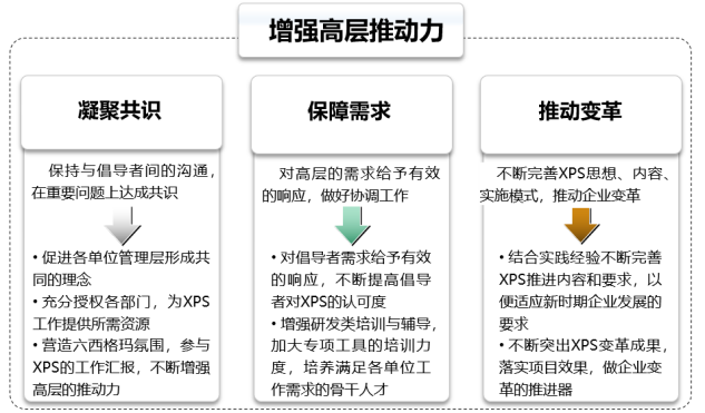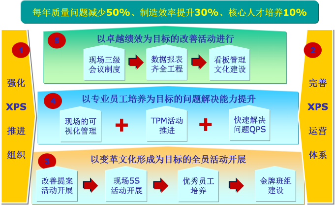 作為我們管理變革的重要武器!增加股東價值、滿足客戶變化、消除內部損耗、加速流程運轉、質量提升輸出、增強反應能力;經過5年多的實施,已經形成了比較完善的方法論體系和管理支撐體系,形成了不斷滿足客戶需求、有力支撐公司戰略的持續變革系統—XPS;