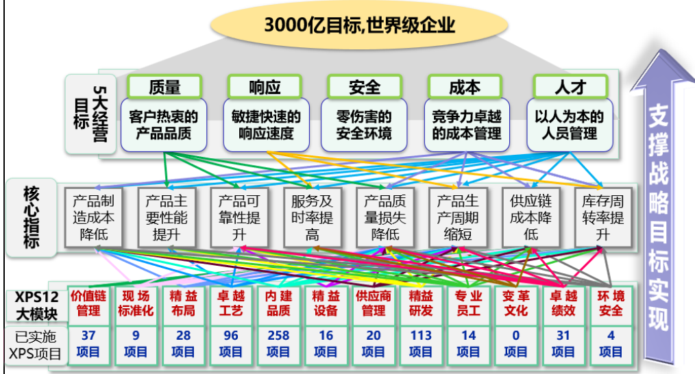 XPS的目標是幫助A成為世界頂級的企業,世界頂級的企業必須能夠提供客戶認可的世界頂級的產品,滿足各種需要的世界頂級的質量,行業最高的運營效率,具有競爭力的國際化人才,以及世界水平的管理運營模式。