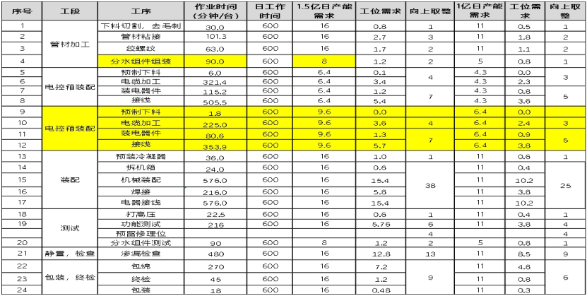 u 5000臺/年,需要生產人力104人,3300臺/年,需要生產人力73人。